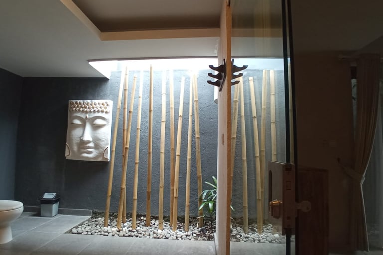 Villa Pantai Harmoni Bali propose : la location d'une villa privée de style 'contemporaine intimiste' climatisée de 210 m2, dans une ruelle calme sécurisée avec une place de parking. Située à Canggu 'Batu Bolong' quartier branché sur la cote sud ouest de Bali bien connu pour ces spots de surf. La villa en rez de chaussée comprend : 1 salon spacieux fermé avec TV grand écran et barre de son, le Wifi, 1 cuisine équipée avec ilot central, 3 chambres, 3 salle de bains, piscine 8 x 2,5 mètres, ces installations procurant le confort nécessaire à un séjour reposant. Située à seulement à 700 mètres de la plage, à proximité directe de toutes commodités : commerce, bar, restaurant, école, hôpitaux, aéroport international 16 km. Offrant également un service personnalisé de grande qualité notamment avec : l'entretien de la piscine, le ménage quotidien. L'équipe de personnel fera tout son possible pour que vous passiez un agréable séjour, avec en prime l'hospitalité Balinaise chaleureuse et amicale. La Villa Pantai Harmoni convient aussi bien au court séjour, qu'à ceux de longue durée de plus d'un mois. La Villa Pantai Harmoni vous souhaite d'agréables moments de détente et de bonheur sur l'ile des Dieux.